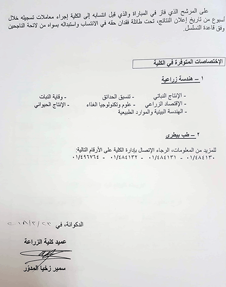 إعلان عن اجراء مباراة الدخول إلى السنة المنهجية الأولى باللغتين الفرنسية و الإنكليزية في كلية الزراعة للعام الجامعي 2018 - 2019